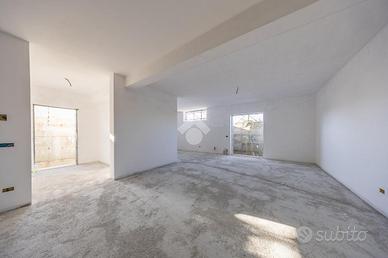 Un ampio soggiorno con angolo cottura, progettato per accogliere soluzioni con isola o penisola, perfetto per chi ama condividere momenti in casa. L'accesso diretto al portico esterno amplia lo spazio abitativo, regalando un ambiente ideale per vivere all'aperto in ogni stagione.