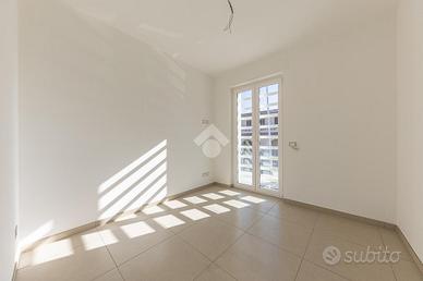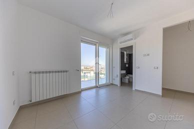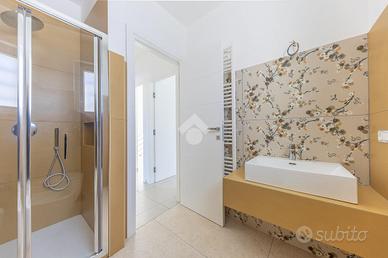 Camera padronale con cabina armadio, bagno privato (doccia 90x90) e balcone coperto di 11,50 mq, due camere singole e secondo bagno completo con doccia 90x90.