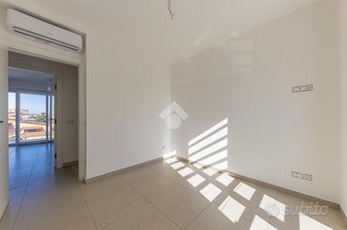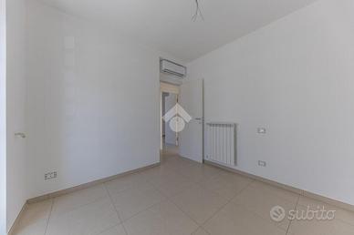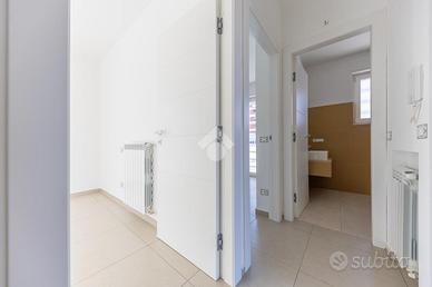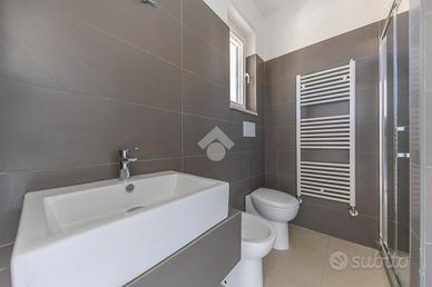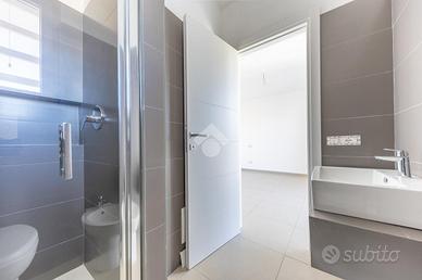 Camera padronale con cabina armadio, bagno privato (doccia 90x90) e balcone coperto di 11,50 mq, due camere singole e secondo bagno completo con doccia 90x90.