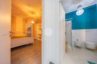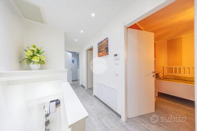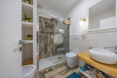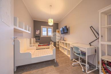 Il primo piano, non mansardato, è composto da due camere, un locale adibito a camera e doppi servizi di cui uno con doccia e l'altro con vasca.
