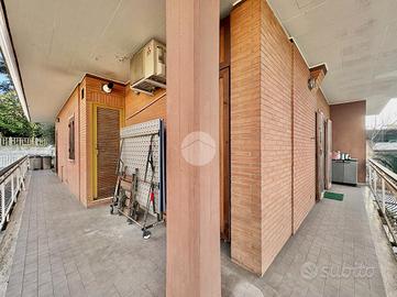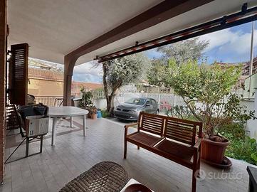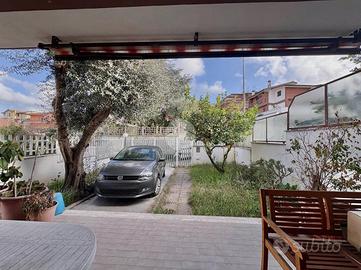 Casal Bernocchi - Via Vincenzo Tardani Villa bifamiliare di 140 mq sviluppata su due livelli fuori terra,situata in un tranquillo contesto residenziale. L'immobile si distingue per l'eccellente esposizione (Sud-Est e Ovest) che garantisce una luminosità naturale straordinaria in ogni ambiente della casa.Internamente composta da:Piano Terra: Ingresso, ampio salone doppio con camino, cucina separata e abitabile,bagno finestrato e un balcone perimetrale con comodo ripostiglio che collega il patio esterno al giardino privato di circa 40 mq.Piano Superiore:tre camere da letto, di cui una padronale con terrazzo privato e due collegate da un secondo balcone, oltre a un bagno finestrato. Pertinenze: La proprietà è completata da un posto auto privato interno.Posizione e Luce: Collocata in una via riservata ma ben collegata alle arterie principali (Via Ostiense e Via del Mare), la tripla esposizione rende la villa una soluzione abitativa luminosa e accogliente.Vantaggi Strategici per l'Acquirente:Collegamenti e Trasporti: Posizione privilegiata a pochi minuti dalla stazione Casal Bernocchi - Centro Giano (Linea Roma-Lido/Metromare), che permette di raggiungere rapidamente l'EUR (scambio Metro B Magliana) e il litorale di Ostia.