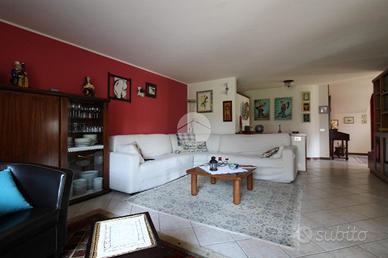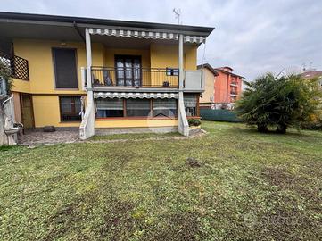 Dalla veranda si accede al giardino privato, che circonda l'abitazione su tre lati e gode di un'ottima esposizione a sud, ideale per momenti di relax all'aperto.