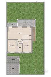 All'esterno, una scala indipendente conduce al piano superiore, dove un disimpegno collega una camera da letto e un ripostiglio. La camera è dotata di bagno di servizio finestrato con doccia, ideale come area ospiti o spazio privato aggiuntivo.