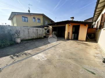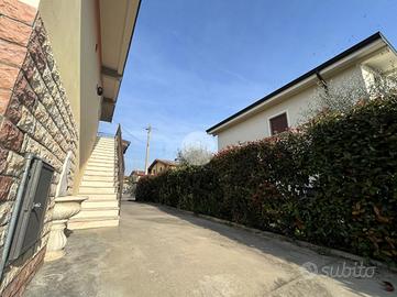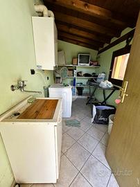 Sul retro dell'abitazione, al piano terra, si trovano un box auto singolo adiacente a una pratica lavanderia. Di fronte al box è presente un ampio spazio di manovra, utilizzabile anche come area di parcheggio aggiuntiva, che garantisce comodità di accesso e ulteriori posti auto.
