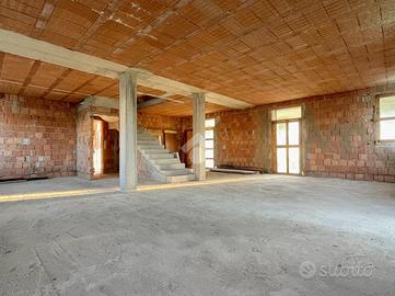 L'immobile presenta al piano terra la possibilità di creare una ampia zona giorno di 35mq con cucina separata, una camera matrimoniale e una singola, un bagno, un ampio ripostiglio e accesso diretto al box auto di 15mq. Il piano primo invece offre la possibilità di ricavare altre due camere da letto e presenta già la predisposizione per due bagni al piano.