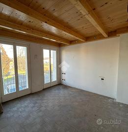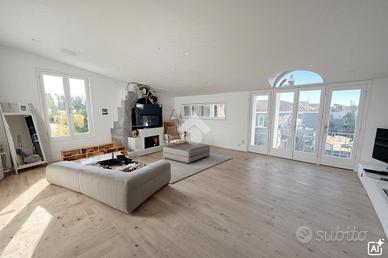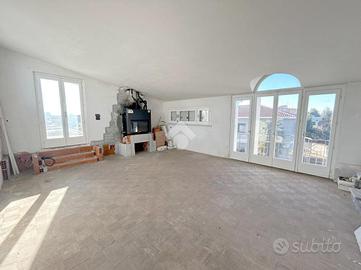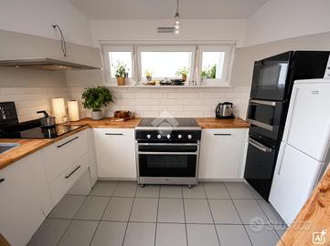 Porzione di villa di testata di 230 mq. totali, sviluppati su piani sfalsati comprendenti un'abitazione di 4 locali, doppi servizi, con locali cantinati.