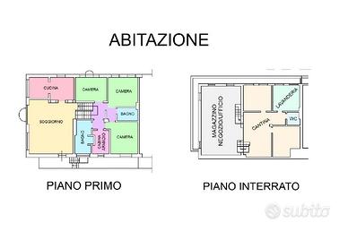Mentre nel piano interrato sono presenti locali cantina e un servizio.