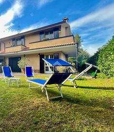 Nella frazione di Ferie, proponiamo in vendita un'abitazione di 131mq disposta su due livelli, ideale per chi cerca spazio e comfort. Al piano terra l'immobile offre una sala accogliente con camino, una cucina abitabile, un bagno ed una lavanderia, garantendo funzionalità e praticità. Salendo al primo piano, troviamo un ampio e luminoso soggiorno anch'esso con camino e balcone, una camera matrimoniale con accesso diretto ad un altro balcone, una cameretta ed un bagno. L'ampio giardino esterno di 450mq rappresenta un valore aggiunto, perfetto per momenti di relax all'aria aperta. Completano la proprietà un box doppio ed una cantina. Questa soluzione abitativa è perfetta per chi desidera vivere in un contesto tranquillo senza rinunciare a spazi generosi.