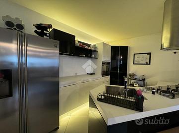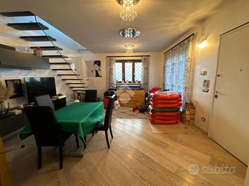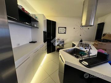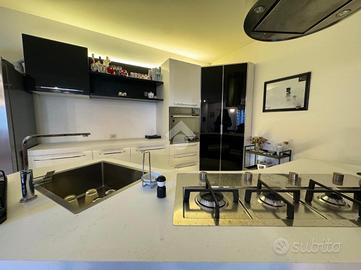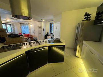 Al piano terra l'ingresso apre su un luminoso salone con cucina a vista, uno spazio accogliente e funzionale, ideale per i momenti di convivialità.