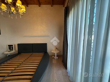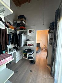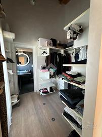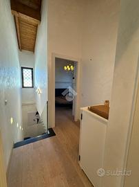 Salendo al piano superiore si accede alla zona notte, dove troviamo il primo bagno, una camera da letto spaziosa e luminosa, una cameretta e una comoda cabina armadio con bagno annesso, pensata per garantire praticità e comfort.