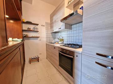 Entrando troviamo un accogliente e luminoso soggiorno, collegato al cucinotto, perfetto per trascorrere momenti di convivialità con famiglia e amici.