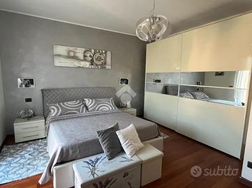 Tramite scala interna rifinita in legno, si accede al primo piano composto dal ripostiglio, dal bagno con doccia idromassaggio, dalla cameretta e dalla camera matrimoniale ampia. Tutte le stanze hanno l'affaccio sui balconi.