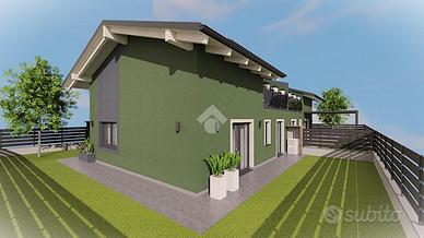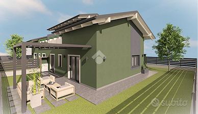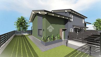 NUOVA COSTRUZIONE - PORZIONE SINISTRA DI UNA VILLA BIFAMILIARE CON SOPPALCO ALL'AMERICANA, BOX AUTO, GIARDINO SU TRE LATI DI 150MQ E TERRAZZO.