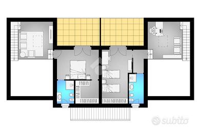 In un villaggio di prossima realizzazione, in una posizione tranquilla e immersa nel verde, con splendida vista sulle montagne della Val Susa, proponiamo porzione sinistra di una villetta bifamiliare di nuova costruzione, disposta su due livelli e realizzata in classe energetica A3. L'abitazione è dotata di riscaldamento a pavimento, pompa di calore, raffrescamento estivo, predisposizione per antifurto e climatizzazione, box auto privato al piano strada con accesso diretto all'abitazione, e giardino su tre lati. La zona giorno, esposta a sud, si sviluppa in un ambiente unico di circa 33 mq, ideale per ospitare cucina abitabile e soggiorno living, con accesso diretto al giardino. Completano il piano terra un disimpegno, una cameretta/studio e un bagno finestrato. Al piano superiore si trova un elegante soppalco con affaccio all'americana sulla zona giorno, un elemento architettonico di grande fascino che dona luminosità e profondità agli spazi. Seguono una camera matrimoniale con ampia cabina armadio, un bagno e un terrazzo esposto a sud. Il box auto di 18,75 mq e il giardino privato con ottima esposizione completano la proprietà. Possibilità di apportare modifiche interne per personalizzare gli ambienti secondo le proprie esigenze.