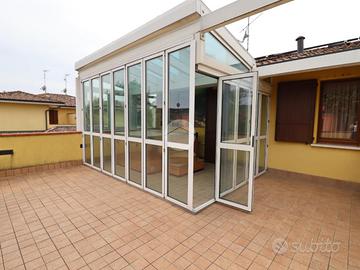 La terrazza è dotata inoltre di impiano di allarme e videocamere.