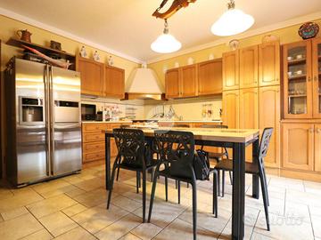 L'immobile dispone di ampi spazi e si sviluppa su due livelli: a piano terra ampio e luminoso soggiorno con camino, cucina abitabile separata da unica ed esclusiva porta scorrevole in vetro, con accesso al giardino laterale ed al portico retrostante.