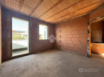 S. GIORGIO DELLE PERTICHE - In centro al paese, comoda a tutti i servizi che la zona offre, ma allo stesso tempo in quartire residenziale molto tranquillo, porzione di bifamiliare al grezzo sviluppata su due livelli.