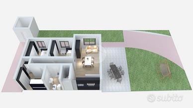 Scario, località turistica rinomata per la bellezza naturale del territorio, al parco Spineto porzione di bifamiliare con spazio esterno attrezzato. La soluzione si sviluppa su un unico livello e si compone di quattro locali offrendo una disposizione interna pratica e funzionale; la zona giorno, con salone ed angolo cottura open space, è valorizzata dalle aperture, che donano aria e luce a tutto l'ambiente, e che permettono l'accesso diretto sull'ampio terrazzo coperto, perfetto per pranzi e cene estive. Le tre camere da letto, due matrimoniali ed una singola, tutte accessoriate da finestra, formano la zona notte. Il bagno, con doccia, ed il ripostiglio completano l'interno. La proprietà dispone anche di un giardino privato che valorizza ulteriormente l'esterno, luogo ideale per godersi la tranquillità del luogo; inoltre, vi è il posto auto interno che completa la proprietà.