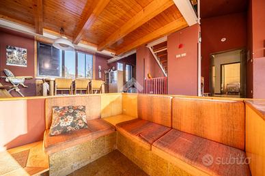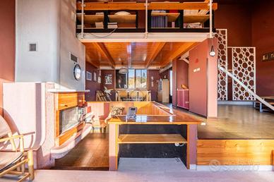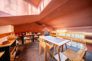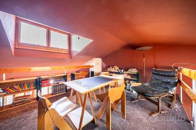 Salendo dal soggiorno possiamo trovare un soppalco comodo per essere usato come studio.