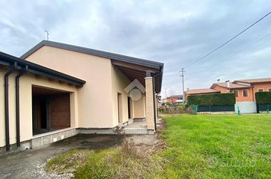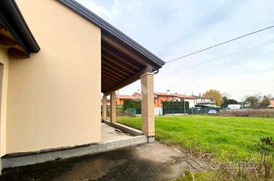 SAN PIETRO VIMINARIO: a Vanzo porzione di bifamiliare al grezzo su un unico piano. Dall'ampio portico con travatura in legno si accede alla zona giorno composta da: soggiorno luminoso con cucina abitabile; attraverso il disimpegno si giunge alla zona notte con tre camere da letto di cui una matrimoniale e due doppie e un bagno finestrato. Completano la proprietà il garage per un'auto, un secondo servizio/lavanderia e il giardino privato di circa 700 mq. Cappotto esterno da 12 cm. Possibilità di recuperare il sottotetto come piano mansardato con travi a vista e di personalizzare gli spazi interni a proprio piacimento.