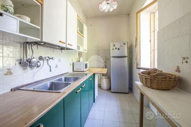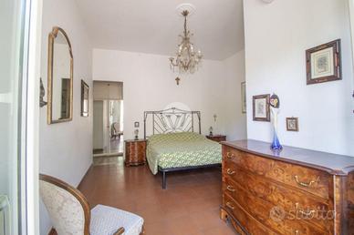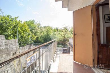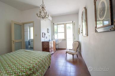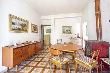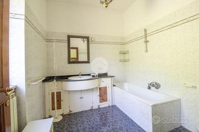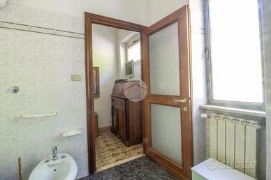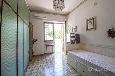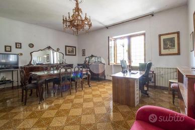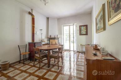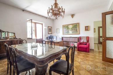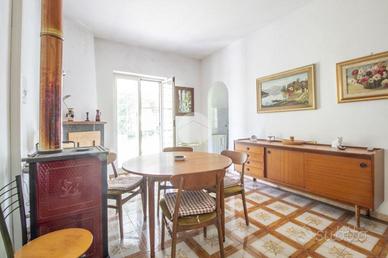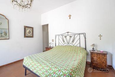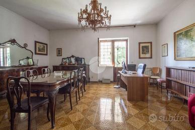 San Polo dei Cavalieri. :Sulla strada Maremmana, proponiamo in vendita porzione di villa con Ingresso Indipendente e passo carraio. La Porzione di villa, Costruita negli anni 70, al primo piano misura 106 mq calpestabili, ed è cosi suddivisa:Ingresso con disimpegno, cha fa da snodo tra la prima camera da letto, con affaccio sul balcone, e la zona giorno. La zona giorno, molto luminosa grazie alla porta finestra che da sul cortile anteriore, è a sua volta suddivisa in: Salone, adibito anche a studio, Sala da pranzo con camino, anch'essa con affaccio sul soleggiato cortile anteriore e angolo cottura. Si passa poi alla zona notte attraverso un corridoio. Qui troviamo il primo bagno con vasca ed un'ampia camera da letto completa di bagno padronale con box doccia. La proprietà comprende anche un cortile posteriore pavimentato, un terreno di 12279 mq con 50 alberi da frutto, prevalentemente collinare, da cui si accede tramite un cancello in ferro, ed un grande magazzino di 94 mq che a sua volta è composto da Garage, due ripostigli ed un bagno. La villa ha delle rifiniture risalenti agli anni 80, quindi offre la possibilità di essere personalizzata. DATI TECNICI: Gli infissi interni sono nel salone, nella sala da pranzo ed in cucina in vetro singolo e legno massello, mentre nelle altre stanze della casa sono in doppio vetro e alluminio. Gli infissi esterni sono in alluminio con inferiate. Le porte interne sono in legno e Il pavimento è in grés. L'immobile presenta impianto d'allarme, impianto idraulico fornito da due pozzi, riscaldamento tramite caldaia a condensazione e impianto elettrico tramite motogeneratore di 5 kwh. Il fiore all'occhiello della casa è l'ampio spazio verde posteriore, dove potersi rilassare dallo stress della vita lavorativa, all'ombra di uno degli alberi da frutto presenti nel terreno che per la loro disposizione ricordano le caratteristiche dei parchi naturali. La residenza si trova proprio sulla via Maremmana, che collega Palombara Sabina a