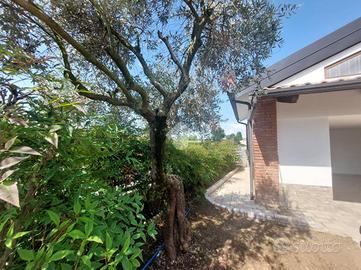 Al piano primo, la zona notte è composta da tre camere da letto di grandi dimensioni e un ampio bagno predisposto per vasca o doccia. L'immobile si distingue per la sua classe energetica A, grazie all'impianto fotovoltaico da 4,5 kW/h e alla pompa di calore. Inoltre, è stata installata una termostufa a pellet come alternativa alla pompa di calore, utilizzabile sia per il riscaldamento che per la produzione di acqua calda sanitaria.