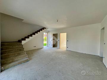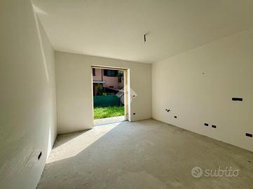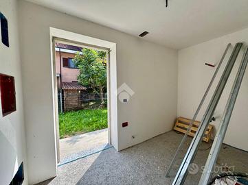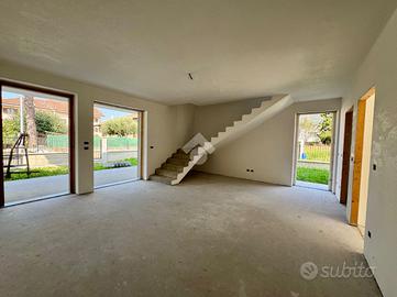 Piano Terra: accogliente soggiorno, spaziosa cucina abitabile, bagno funzionale, pratico locale tecnico e cantina. Un ampio portico coperto invita a godersi il giardino privato che abbraccia tre lati della proprietà.