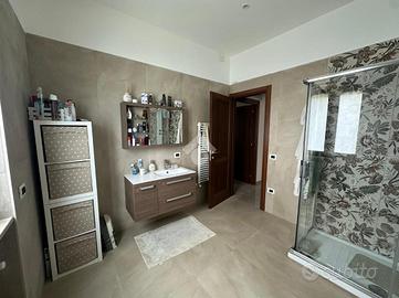 Il primo piano è composto da ingresso, sala con camino, cucina abitabile con terrazzo, bagno, lavanderia, ripostiglio e due ampissime camere. Il secondo piano presenta ulteriori due camere, uno studio, un bagno, due ripostigli. Dotato di aria condizionata.
