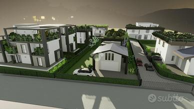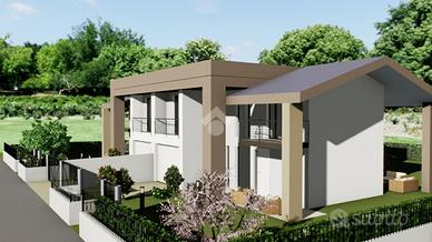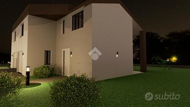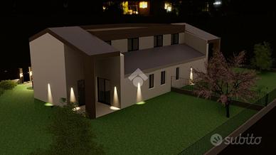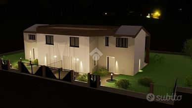 LA CASA CHE HAI SEMPRE SOGNATO COSTRUZIONE A 5 STELLE - LA CASA CHE RESPIRA NZEB Il nuovo complesso residenziale 'Luxury Resort Le Ville Green' sorgerà nella zona Sud del paese, alle spalle del centro storico e prevede la realizzazione di 18 unità abitative, 13 delle quali con accessi pedonali e carrabili indipendenti e ampi giardini di pertinenza. Nello specifico verranno edificate una villa singola, due bifamiliari, una trifamiliare e due piccoli condomini da 5 unità cadauno indipendenti. L'immobile qui proposto è una villa bifamiliare costruita su un lotto di mq 520, di cui ben 350 mq sono destinati a giardino di pertinenza; al piano terra si trova l'ampia zona giorno, il bagno, un comodo studio, la lavanderia, due portici e l'accesso diretto all'autorimessa doppia oltre al posto auto coperto da pergolato in legno; al piano primo troviamo le tre camere matrimoniali, il bagno e un'ampia terrazza. La parola d'ordine di questo progetto è 'GREEN ', verrà infatti realizzato con una particolare attenzione al contenimento dei consumi energetici così da classificarsi in Classe ' A4 ' a bolletta zero, in quanto l'energia necessaria per la vostra abitazione sarà garantita da fonti rinnovabili con pompa di calore collegata al fotovoltaico con accumulo. Inoltre sono dotate di un sistema di VMC (ventilazione meccanica) per la sanificazione degli ambienti e la deumidificazione. Questo contesto sembra essere nato già nel FUTURO, ogni particolare sia costruttivo che di finiture è stato prima studiato e pensato, poi scelto per una clientela esigente e sensibile al benessere unico, viziata e coccolata all'efficenza e all'ambiente. Gli elevati standard che s'impone questo progetto hanno portato l'esecutore a scegliere tecnologie costruttive altamente performanti come il sistema costruttivo della CLIMA BLOCK per la muratura e il termosolaio denominato KALDO, materiali ecologici e antibatterici, altamente energetici, con attenzione all' acustica ma soprattutto an