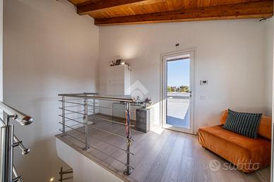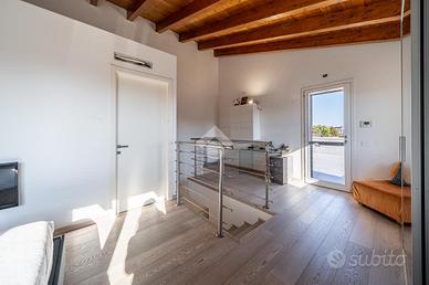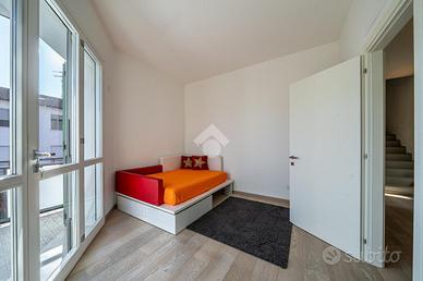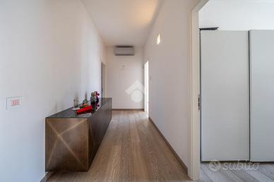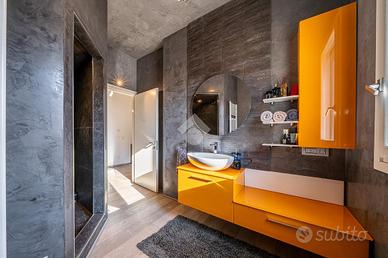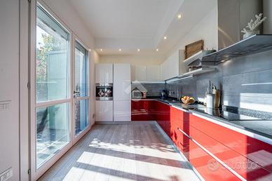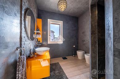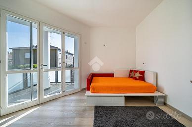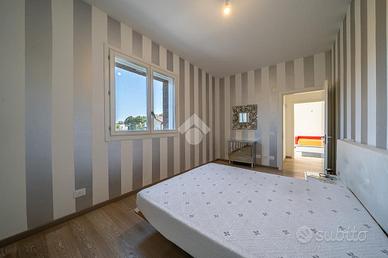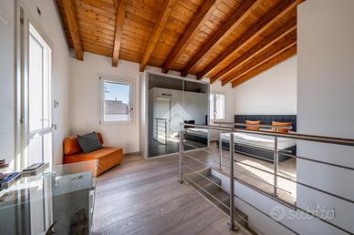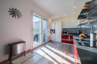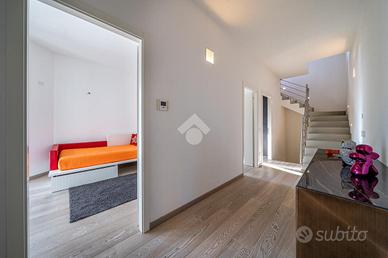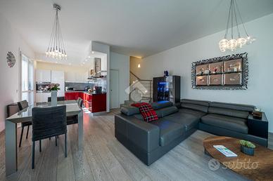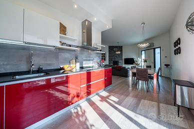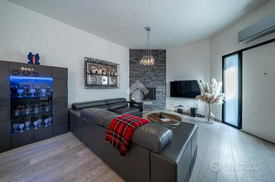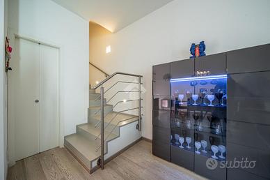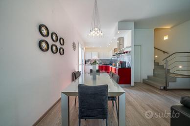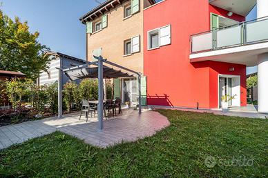 CALERNO- PORZIONE DI BIFAMILIARE. A Calerno, in uno dei quartieri residenziali più recenti e tranquilli del paese, proponiamo in vendita una porzione di bifamiliare davvero esclusiva. L'abitazione, costruita nel 2011, si presenta in condizioni eccellenti, pari al nuovo, grazie anche ai lavori di ammodernamento eseguiti nel 2019 che ne hanno ulteriormente esaltato il carattere moderno e raffinato. La casa gode di una doppia esposizione ottimale a sud-est, che garantisce luminosità in ogni momento della giornata, e di un giardino privato estremamente curato, circondato da siepi che assicurano privacy e riservatezza. Gli spazi esterni sono organizzati con grande attenzione: camminamenti, aree verdi, portici e una splendida pergola rendono questo ambiente perfetto per trascorrere il tempo libero, accogliere amici o semplicemente rilassarsi all'aperto. L'ingresso è completamente indipendente e conduce, attraverso il portico, direttamente nella zona giorno. Qui si viene accolti da un ampio soggiorno doppio, luminoso e accogliente, che si apre verso una cucina moderna in stile open space, pur mantenendo una chiara distinzione degli ambienti. Sempre al piano terra è presente un bagno completo di antibagno e doccia, finemente rifinito. Salendo al primo piano si accede alla zona notte, dove trovano spazio due camere matrimoniali di generose dimensioni, una di queste dispone di un terrazzo privato. Il bagno principale, anch'esso molto ampio, è dotato di una doccia sensoriale e rifinito con materiali di qualità. Sullo stesso piano è stata realizzata anche una lavanderia, comoda e discreta, che contribuisce alla praticità della casa. Proseguendo verso il piano mansardato si scopre un ambiente versatile e accogliente, attualmente utilizzato come terza camera da letto e zona relax. Questo spazio dispone di un'ulteriore lavanderia/ripostiglio e offre l'accesso diretto ad un meraviglioso terrazzo solarium di circa 40 metri quadrati, una vera chicca di questa abitazione. A