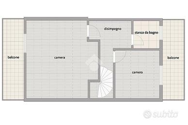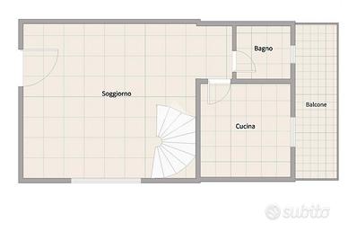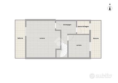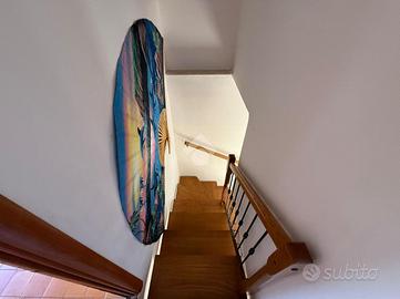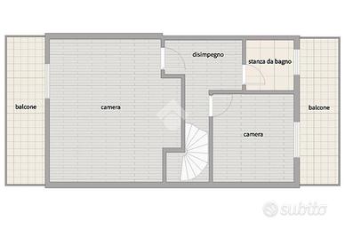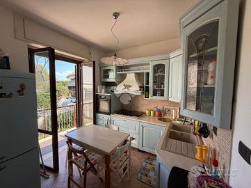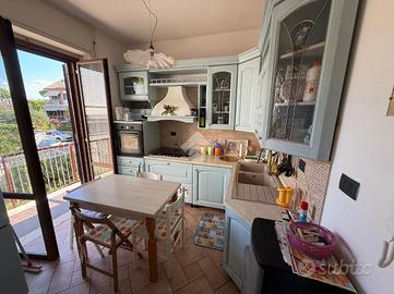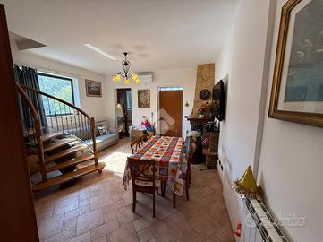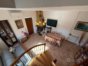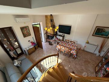 Il piano terra è dedicato totalmente alla luminosa zona giorno, caratterizzata da un ampio salone con camino perfetto per creare un'atmosfera calda ed accogliente, una cucina abitabile servita da un terrazzino e un comodo bagno finestrato con box doccia. La scala in legno, elemento di pregio dell'immobile, conduce al piano superiore composto da una spaziosa camera matrimoniale con balcone proprio, una cameretta anch'essa con un proprio balcone e bagno finestrato con vasca idromassaggio.