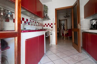 Il piano terra è dedicato interamente alla zona giorno. Il doppio salone apre la descrizione, ambiente grande e luminoso, successivamente è presente la cucina separata con portafinestra che conduce al giardino esterno, tinello che oggi è dedicato a salotto di relax, disimpegno che conduce al bagno finestrato ed infine un comodo ripostiglio.