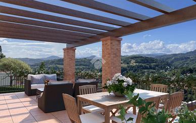 SASSO MARCONI AD.ZE (loc. Pieve del Pino): A soli 4 km dalle principali arterie autostradali, proponiamo in posizione panoramica, una porzione di bifamiliare. Questa residenza signorile, di prossima costruzione, si estende su una superficie di oltre300 mq distribuiti su più livelli.