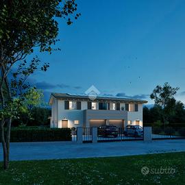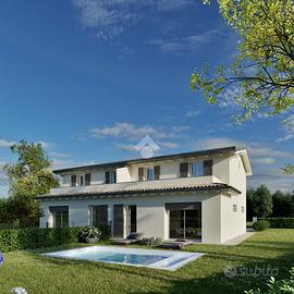 CARATTERISTICHE: Proponiamo in vendita in esclusiva a Fellegara, in contesto residenziale e lontano dal caos cittadino, 2 villette abbinate di nuova costruzione in classe A4 con ampie metrature, giardino di 660 mq. garage e terrazzo. COSA SAPERE SULL'IMMOBILE: Il lotto presenta la costruzione di due villette abbinate con un design molto elegante, l'ingresso delle villette, libere su 3 lati, si compone al piano terra di un luminoso salotto di 30 mq. calpestabili, ampia cucina abitabile, bagno e locale tecnico. Al primo piano troviamo due camere da letto matrimoniali di cui una con terrazzo, una camera singola con ulteriore terrazzo di 14 mq. e bagno. A pertinenza dell'abitazione garage e giardino OPPORTUNITA': L'ampio giardino consente di avere lo spazio per una piscina, essendo una nuova costruzione, gli ambienti sono tutti personalizzabili in base alle singole esigenze. Il prezzo si intende di abitazione finita in tutti i particolari. Consegna in 12 mesi!