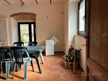 La proprietà si compone inoltre di un appartamento situato al piano terra ottimamente rifinito con pietra a vista, pavimento in cotto e archi a volta. E' dotato di due vani pluriuso con doppio accesso al giardino esclusivo e bagno.