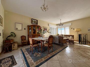L'ingresso conduce al piano rialzato, che si apre su un luminoso soggiorno affiancato da una seconda sala. Da qui si accede al piano interrato, creando un collegamento pratico tra gli ambienti e offrendo spazi ideali per momenti conviviali o per vivere la casa in totale comodità.