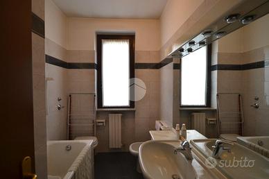 Dal disimpegno notte, sempre al piano, è possibile accedere alle due camere da letto, di cui la matrimoniale molto spaziosa, e ai doppi sevizi, entrambi finestrati, dotati di doccia e vasca.