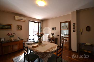 In tranquilla zona residenziale, porzione di villa bifamiliare valorizzata dal giardino privato su tre lati.