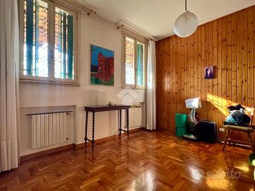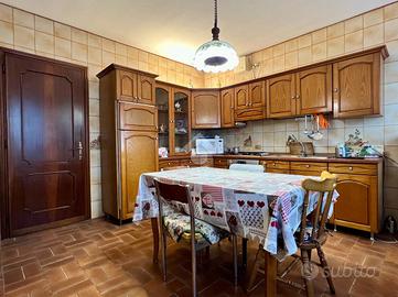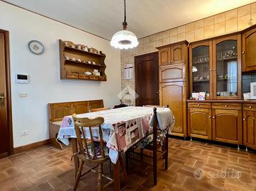 Proponiamo in vendita una porzione di bifamiliare, situata in un immobile risalente agli anni '50 ma oggetto di vari interventi di ristrutturazione e ampliamenti nel corso degli anni. La soluzione si presta perfettamente a nuclei familiari numerosi o a chi desidera un'abitazione con spazi distinti ma collegati, offrendo al contempo privacy e versatilità. L'unità, disposta su due livelli, si compone al piano terra di ingresso, soggiorno, cucina separata, sala da pranzo e ripostiglio. Una scala interna conduce al primo piano, dove si trovano tre camere da letto matrimoniali, due bagni finestrati, un ripostiglio e un poggiolo. L'unità è dotata di un impianto fotovoltaico da 3 kW e gode di accesso diretto a un ampio box ci circa 100 mq, in passato utilizzato come officina. Questa zona, ampliata nel 1988, include anche un'area bagno, una lavanderia e la centrale tecnica, offrendo spazi comodi e multifunzionali. Di pertinenza anche un ampio giardino di circa 700mq (evidenziata l'area in verde nella sezione delle planimetrie). La proprietà rappresenta una soluzione ideale per chi cerca indipendenza abitativa senza rinunciare alla vicinanza, con ambienti ampi, funzionali e dotati di tutti i comfort. Ottima anche come investimento, grazie alla possibilità di destinare una delle due unità alla locazione o ad uso professionale.