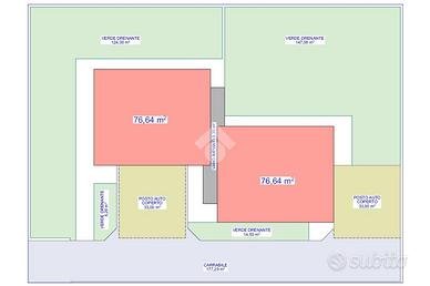 Ogni soluzione avrà due posti auto in larghezza, coperti da una tettoia di circa 33 mq.