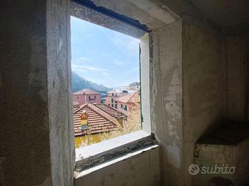 ingresso alla genovese, cucina abitabile con accesso al terrazzino, bagno, una stanza doppia con la possibilità di crearne due e una piccola stanza mansardata da adibire o a secondo bagno o a cabina armadio.