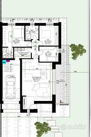 Completano la soluzione il garage ed un' incantevole giardino, che si sviluppa sui tre lati con portico per godere