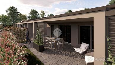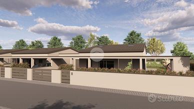 VILLETTA DI TESTA SU UNICO LIVELLO DI NUOVA COSTRUZIONE Presentiamo un'incantevole villetta di testa, situata in una zona esclusiva di Sorbolo, nel quartiere Musicisti. Questa moderna abitazione, concepita su un unico livello, è progettata per garantire il massimo del comfort e dell'efficienza energetica, classificata in classe A4. Spazio Esterno: La villetta è circondata da un ampio giardino su tre lati, ideale per godere di momenti all'aperto in totale privacy. L'ingresso si apre su una zona giorno caratterizzata da vetrate, che permettono di godere di una luminosità naturale e di un piacevole ambiente. Disposizione Interna: Il disimpegno collega perfettamente le tre camere da letto, garantendo un'ottimale distribuzione degli spazi. La proprietà comprende due bagni moderni e funzionali, oltre a un locale tecnico/lavanderia, pensato per la massima praticità. È presente anche un garage, offrendo ulteriore spazio per il parcheggio e l'archiviazione, con la possibilità di parcheggiare una macchina all'interno del garage e un'altra auto esclusivamente all'esterno del garage, ma all'interno della proprietà. Comfort Termico: La villetta è dotata di riscaldamento a pavimento, assicurando un clima confortevole in ogni stagione. Il tetto a falde, non piano, garantisce una corretta aerazione e un'ottima gestione delle acque piovane, mentre la coibentazione esterna assicura un'ulteriore efficienza energetica. Tempistiche di Costruzione: I lavori inizieranno a gennaio 2026 e la consegna è prevista entro marzo 2027, per un totale di 15 mesi. Questa villetta rappresenta un'opportunità unica per chi cerca una soluzione abitativa moderna, in una posizione esclusiva e tranquilla. Per questa operazione, gestiamo anche le permute nel caso in cui l'acquisto sia vincolato alla vendita del proprio immobile di proprietà. Ci occuperemo di seguire ogni fase del processo, gestendo al meglio le tempistiche e costruendo insieme l'intera oper