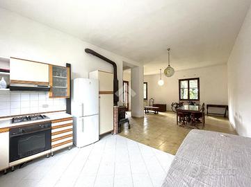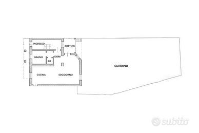 Casa su due livelli con ingresso, cucina e soggiorno openspace, bagno, ripostiglio e accesso al giardino.