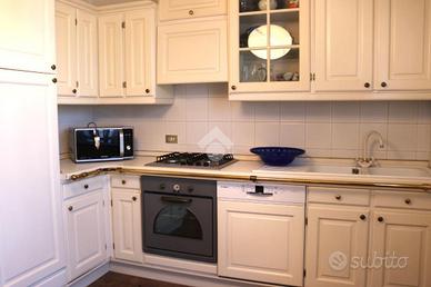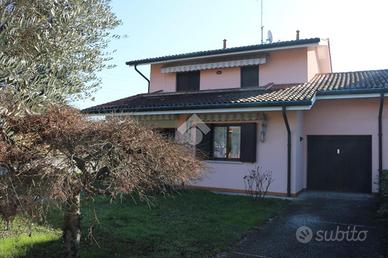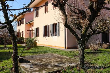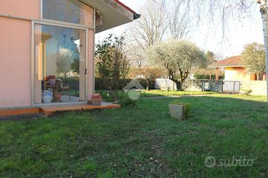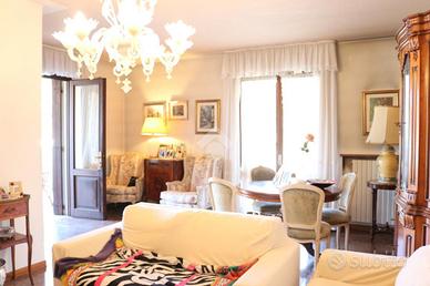 Proponiamo in vendita una porzione di bifamiliare signorile, caratterizzata da finiture di pregio e un ampio giardino privato. L'immobile, costruito nel 1986, si sviluppa su più livelli. Al suo interno, la casa offre sei locali ben distribuiti, tra cui tre camere da letto e due ulteriori stanze versatili, ideali per studio o hobby. La presenza di tre bagni garantisce comfort e praticità per tutta la famiglia. La zona giorno è particolarmente luminosa, grazie alle ampie finestre che si affacciano sul giardino. Un terrazzo offre uno spazio esterno aggiuntivo per momenti di relax. Completa la proprietà un box auto. Situata in una strada ad accesso privato, questa abitazione offre tranquillità e riservatezza, pur essendo vicina ai principali servizi.