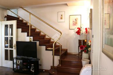 Proponiamo in vendita una porzione di bifamiliare signorile, caratterizzata da finiture di pregio e un ampio giardino privato. L'immobile, costruito nel 1986, si sviluppa su più livelli. Al suo interno, la casa offre sei locali ben distribuiti, tra cui tre camere da letto e due ulteriori stanze versatili, ideali per studio o hobby. La presenza di tre bagni garantisce comfort e praticità per tutta la famiglia. La zona giorno è particolarmente luminosa, grazie alle ampie finestre che si affacciano sul giardino. Un terrazzo offre uno spazio esterno aggiuntivo per momenti di relax. Completa la proprietà un box auto. Situata in una strada ad accesso privato, questa abitazione offre tranquillità e riservatezza, pur essendo vicina ai principali servizi.