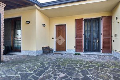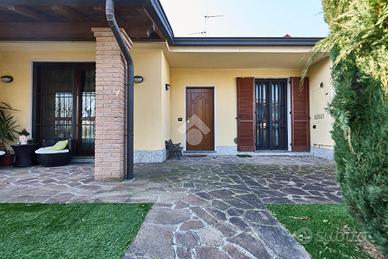 In una zona residenziale di sole villette e bassi caseggiati, tranquilla e ben abitata, in una via chiusa e quindi poco frequentata. Il centro del paese e le scuole sono raggiungibili anche a piedi. La villetta, libera su tre lati e distribuita su un unico livello abitativo è stata costruita nei primi anni'80 ed è stata ristrutturata nel 2021. Dotata di impianto fotovoltaico da 6Kw, impianto di aria condizionata, serramenti con doppi vetri e zanzariere, inferriate e parquet nelle camere. L'area esterna misura circa 270 Mq ed è certamente il punto di forza della villetta, nella parte frontale è presente un porticato in cui potersi rilassare nelle calde giornate estive, nella parte posteriore invece è presente una piscina interrata che misura 3 mt di larghezza per 6 mt di lunghezza ed è dotata di copertura rigida per la stagione invernale, inoltre vicino alla piscina sono presenti una doccia ed una casetta in legno per riporre attrezzi e giochi, a completare il giardino posteriore una pergola in legno e un barbecue. Internamente la casa è stata concepita lasciando spazio alla zona giorno, da un lato la cucina abitabile e dall'altro la sala da pranzo con il camino. Dalla sala si accede allo studio e al disimpegno che accompagna alla zona notte. Lo studio ha una posizione strategica perchè è collegato anche al box auto ed al bagno di servizio della zona giorno, inoltre potrebbe essere utilizzato come camera per gli ospiti o terza camera. Il bagno ha la doccia e la finestra. Nella zona notte ci sono due camere da letto, una matrimoniale ed una per ragazzi, e il bagno con la vasca. La casa è ben tenuta e non necessita di alcuna opera per essere abitata essendo stata recentemente ristrutturata. Il box auto si trova al piano strada ed collegato direttamente all'abitazione. Trattandosi di una soluzione abitativa ad alta efficienza energetica, in classe 'B', è possibile usufruire di mutui a tassi agevolati.