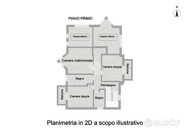 Il piano superiore ospita la zona notte, composta da una spaziosa camera matrimoniale e due camere doppie con balcone, perfette per garantire luce naturale e piacevoli sfoghi esterni, oltre a due bagni, assicurando così privacy e funzionalità per ogni componente della famiglia. Tutte le camere godono di affacci sul giardino, un valore aggiunto che regala quiete, riservatezza e una vista verde capace di rendere ogni ambiente ancora più luminoso e rilassante.