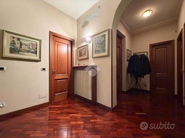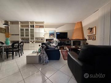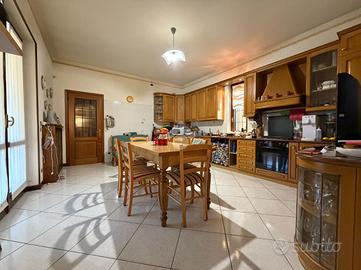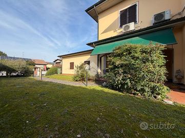 In tranquilla zona residenziale, a pochi passi dalla stazione ferroviaria e vicino a tutti i servizi proponiamo porzione di bifamigliare, con giardino pertinenziale, così composta: al piano terra ampio soggiorno con camino dal quale si accede direttamente al patio esterno, cucina abitabile, un bagno e due comodi box auto entrambi con accesso diretto all'abitazione; al primo piano troviamo quattro camere da letto di cui due con balcone, due bagni entrambi finestrati oltre a ripostiglio; completa la proprietà cantina al piano interrato.