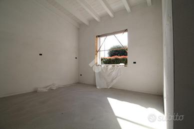 CROCE DEL GALLO: Porzione di bifamiliare di nuova costruzione, sviluppata interamente al piano terra e circondata dall'ampio giardino di proprietà libero su tre lati. La zona giorno è composta da un ampio soggiorno con angolo cottura open space, perfetto per momenti conviviali. Un box auto comunicante con angolo lavanderia aggiunge praticità alla vita quotidiana. La zona notte comprende tre camere da letto e da un bagno, garantendo spazio e comfort per tutta la famiglia. Una delle camere è dotata di bagno privato, offrendo un tocco di esclusività. L'abitazione è predisposta per l'installazione di impianti di climatizzazione in tutti gli ambienti, assicurando comfort in ogni stagione. Questa soluzione abitativa rappresenta un'opportunità per chi desidera una casa moderna e funzionale in una zona residenziale tranquilla.